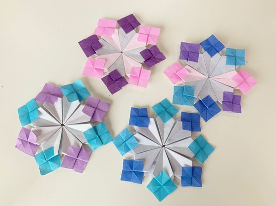 先日生徒と折り紙で紫陽花を作りました(*^-^*)