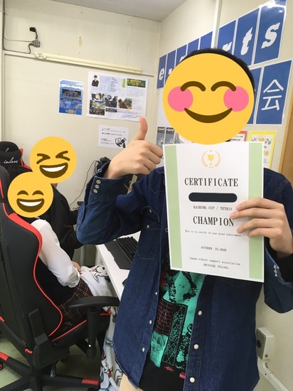 カシマカップ優勝しました! 2020-10-22 お知らせ KG高等学院 富士吉田キャンパス(提携鹿島朝日) こんにちは! 富士吉田キャンパスです! 先日、第4回カシマカップでした! 富士吉田キャンパスでは参加者が3名! なんと、2日目のテトリス大会は今までの大会で一番参加者が多かったのですが、 富士吉田の生徒が優勝いたしました(*^-^*) 嬉しそう(*^_^*) とっても強かったです!! 一覧へ