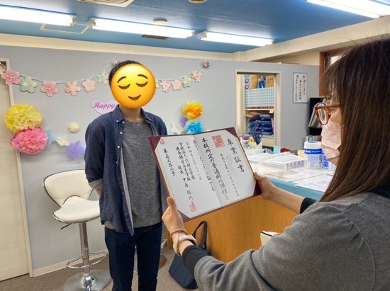 今日は5名の生徒さんが、卒業証書の授与に来てくれました。