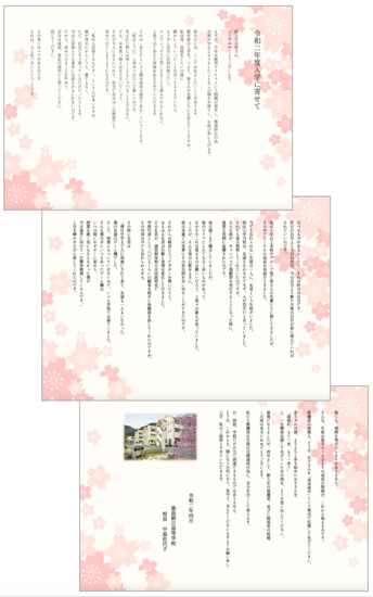 令和二年度入学に寄せて/鹿島朝日高等学校 学校長 中島佐代子 2020.04.15 お知らせ 新型コロナウイルス感染の拡大が懸念されるなか、鹿島朝日高等学校 令和二年度入学式は中止となりました。そこで、新入生の皆さんにお伝えする予定であった「中島校長からのメッセージ」を掲載いたします。新入生の皆さんはもちろん、在校生の皆さんにもご一読いただけたら幸いです。 下の画像の部分をクリック(タップ)すると、メッセージが大きく表示されます。 ↓ ↓ ↓ ↓ ↓ 一覧に戻る