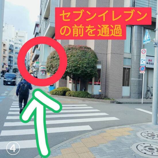 ④この写真には写ってないのですが、《将棋会館》の前を通り、そのまま《セブンイレブン》と《マツモトキヨシ》の前を歩いて行きます。