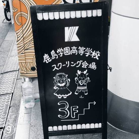 ⑨建物入口には、このように可愛らしい看板が鹿島学園高校の目印として置かれています🦌
