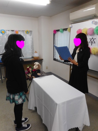 卒業証書授与、祝電紹介、教職員からの祝辞、写真撮影を行い、