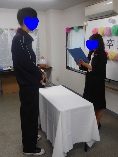 まだ渡せていない生徒には随時個別で証書を読み上げながら手渡し、