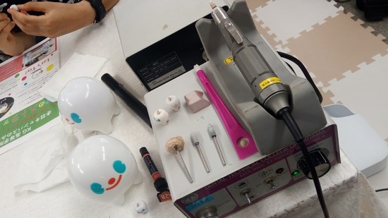 実際に一人一人、本格的な装置を使って、削ったり磨いたりする実技を体験しました。