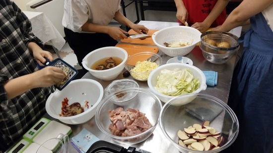 8月は製菓だったので調理は久々ですが、みんな手慣れたもので、上手に切っていくので