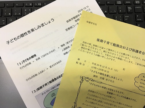 12月11日(日) 後期子育て勉強会&保護者会を開催しました。