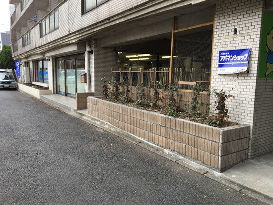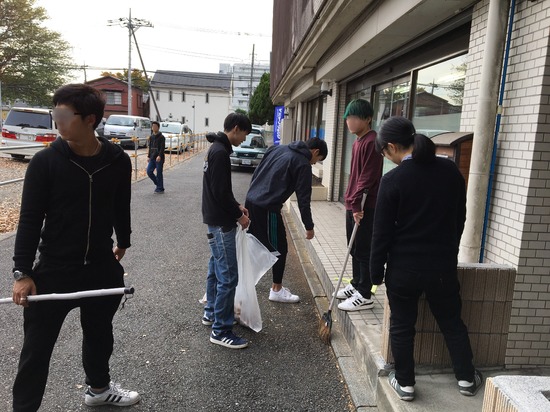外部は、街路樹がある大通りに面しているので、写真のように寒い中、落ち葉掃き、窓拭きをします。