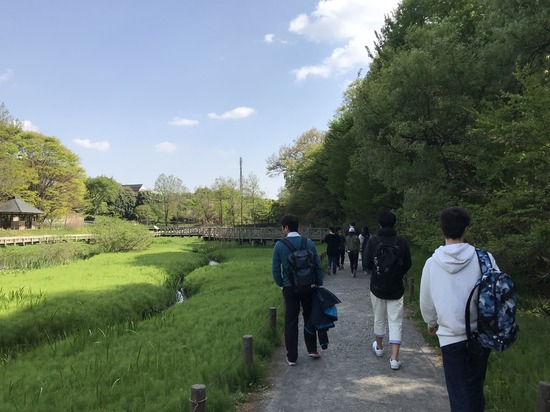 春らしい気持ちがいいお天気の中、新入生の親睦を深めるために、1年生とキャンパス職員で片道2キロ位の距離を歩いて深大寺まで行きました。深大寺では、参拝の仕方を学びながら、参拝。