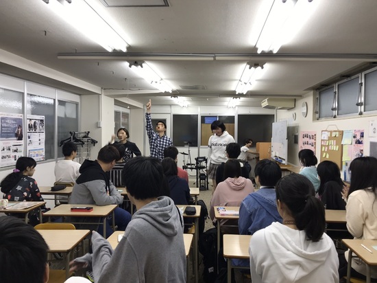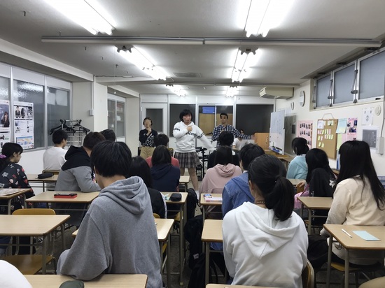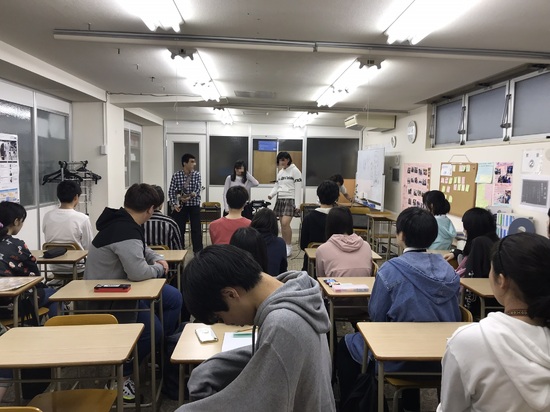 職員紹介と調布キャンパスの部活(ダンス部・軽音楽部)が実演しながら部活紹介&部員勧誘をしました。
