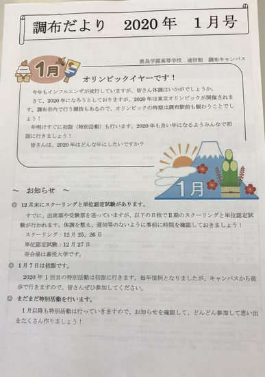 調布キャンパスは12月28日(土)~1月5日(日)迄休校です。