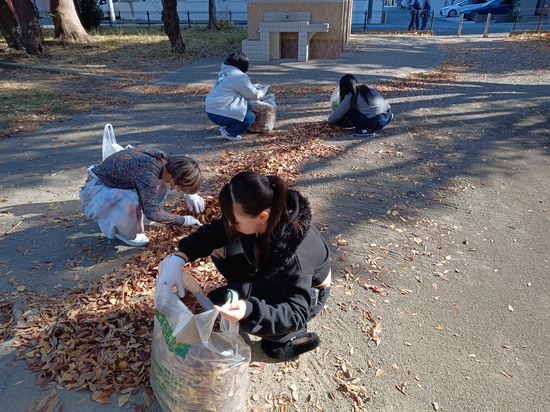 みんな寒い中、落ち葉を回収したり、ごみを拾ったりと頑張って取り組みました。