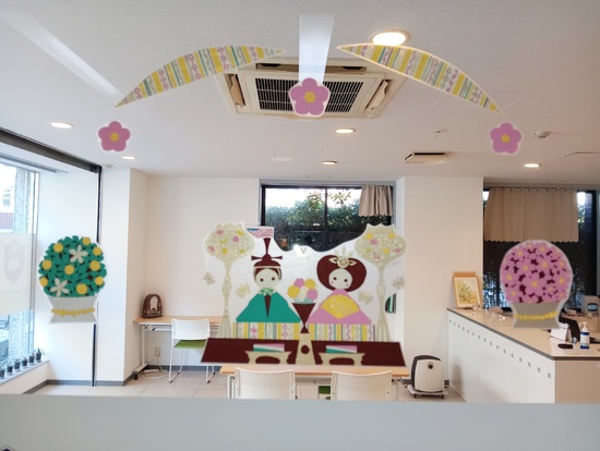 キャンパス入り口のドアシールを🎎お雛様🎎に変えました。