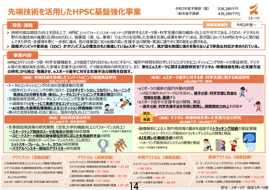 現在、国会で審議されている令和7年のスポーツ庁の予算案(p.14)で、(新規) eスポーツ選手に対する医・科学支援に関する実証研究が始まります。その次の年には、eスポーツ支援手法の開発が続く予定です。