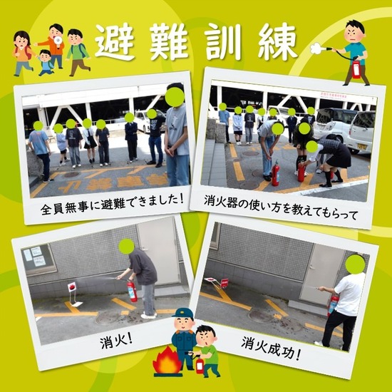 キャンパスから避難場所までの避難経路の確認と、実際の消火器を使った消火訓練を行いました。