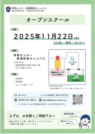 通信制高校への進学をお考えの皆さん、ぜひこの機会を利用して彦根駅前キャンパスのことを知ってください。