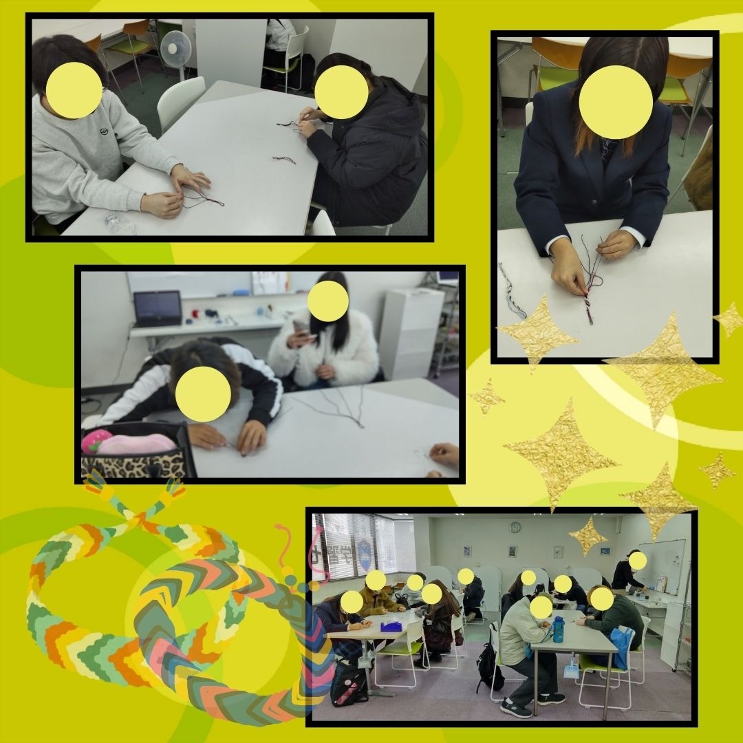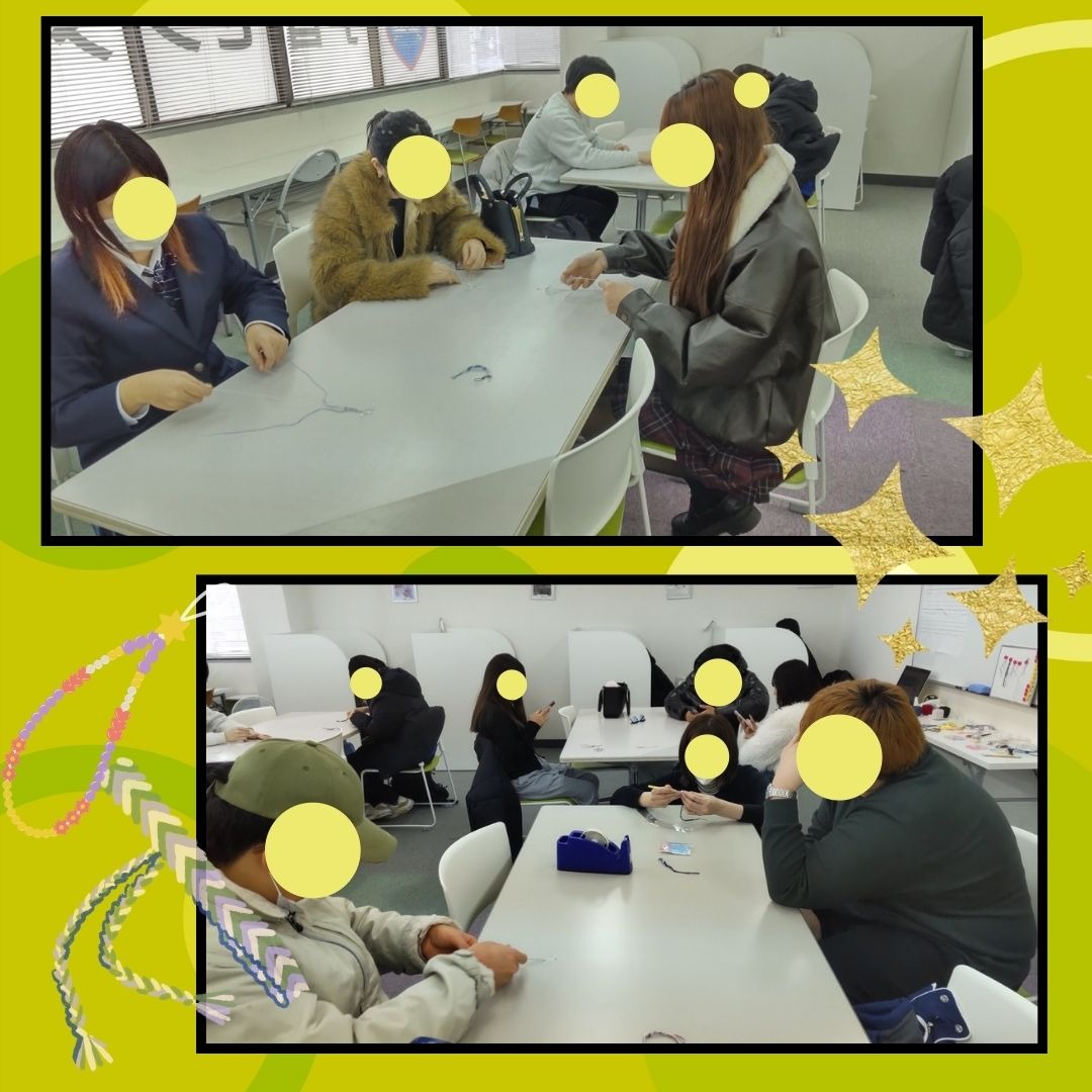 特別活動でストラップを作りました! 2026-02-04 イベント 学習センター 彦根駅前キャンパス 彦根駅前キャンパスでは、特別活動として「創作活動・ストラップづくり」を実施しました!レース糸を使ってミサンガを編む要領で作りました。皆、思い思いの色を選んで素敵な作品を作ることができました。 一覧へ