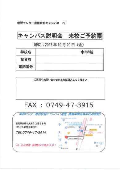 ご参加はお電話、または「キャンパス説明会 来校ご予約票」にご記入の上FAXにてお申し込みください。