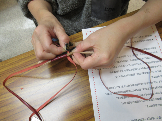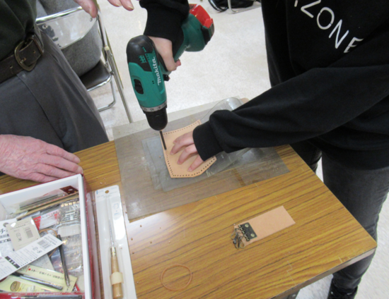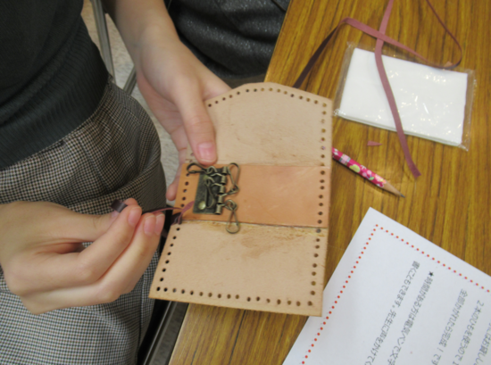 ほとんどが本革細工の初心者で苦戦している生徒もちらほら。