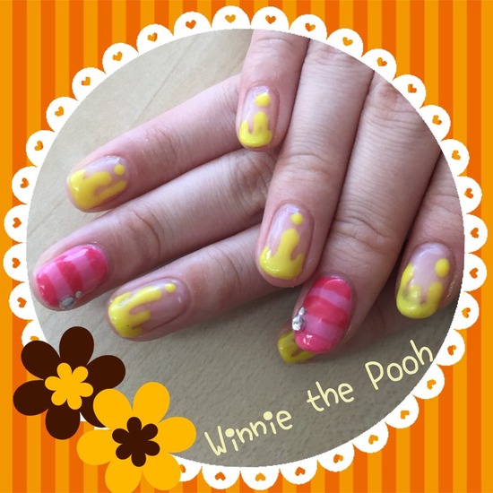 今回は「ディズニーランドに行くので、プーさんネイルを作りたい(#^.^#)」との生徒の作品を、どうぞ( ^ω^)_凵