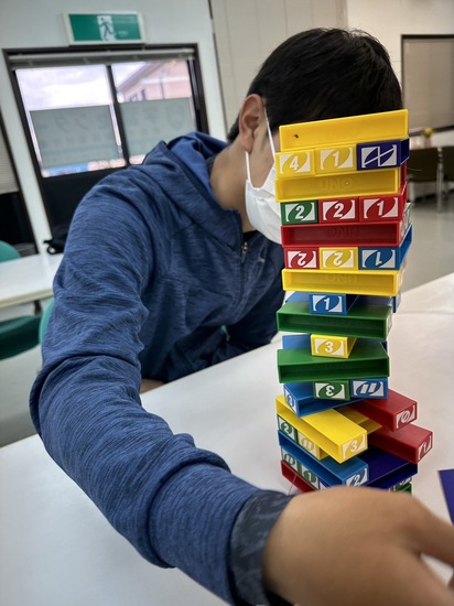 タワーを崩さずにブロックを積み上げることができた人が勝者というゲームです。