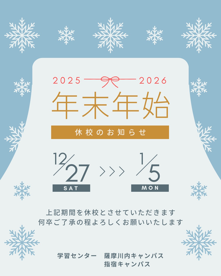 【年末年始 休校期間のお知らせ】