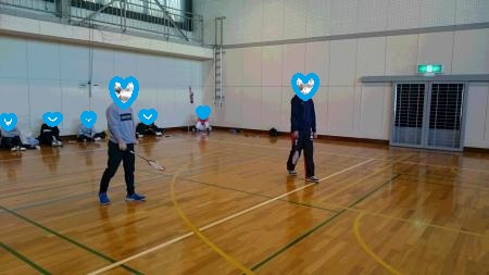 2チームに分かれ、それぞれペアを組んで、ダブルスの試合を行いました。
