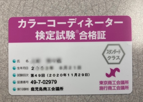 以前受けた色彩検定とカラーコーディネーター検定のW合格を報告してくれました!