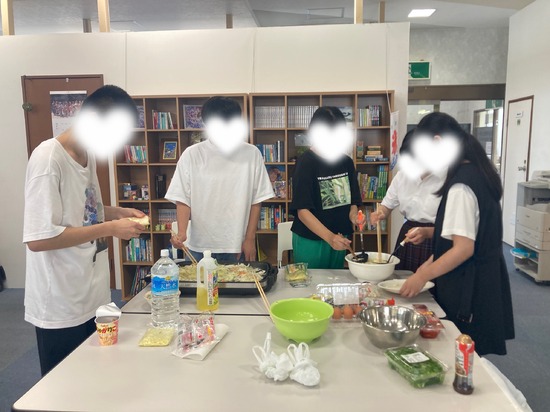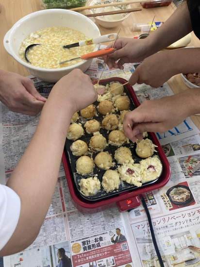 参加した生徒みんなで、たこ焼き、焼きそばを作って食べました。