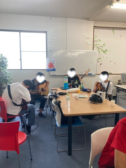 いつもキャンパスで楽器の練習をしている生徒たちが