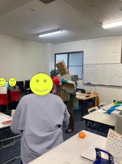 頭も完全に兜(段ボール製)で覆われた、防御力全振りの鬼が登場しましたが、、、、