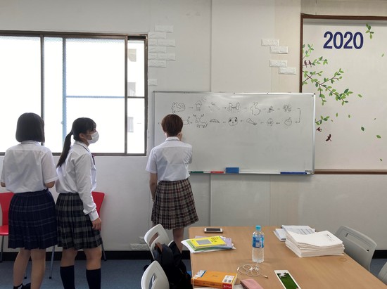 勉強の合間に、ホワイトボードを使って絵しりとり!
