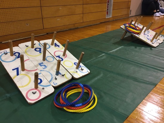 体育祭の後は、「ニチレクボール(屋内ペタンク)」「輪投げ」「ストラックアウト」