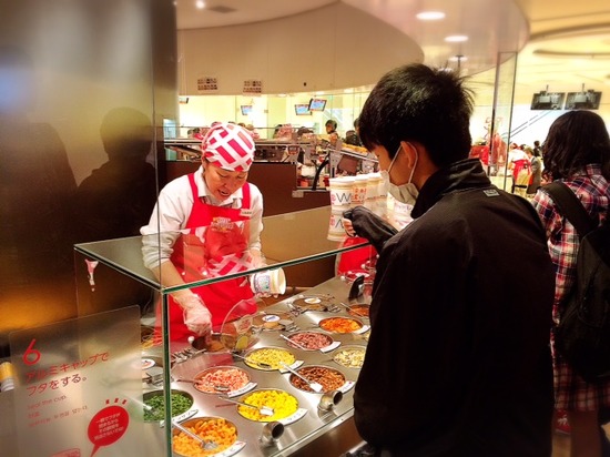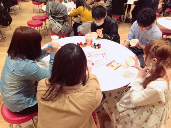 カップの外側に自分でイラストや文字を書き、好みのスープと具材を選ぶと係の方がパッケージをしてくださり完成です(^^)v