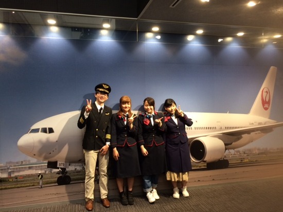 客室乗務員の制服を着て記念撮影をする生徒さんもいました(*^-^*)