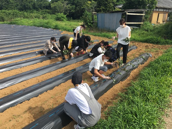 農園を所有されるエコワンファームの方々に苗植えのコツを指導をしていただき、無事に終えることが出来ました。