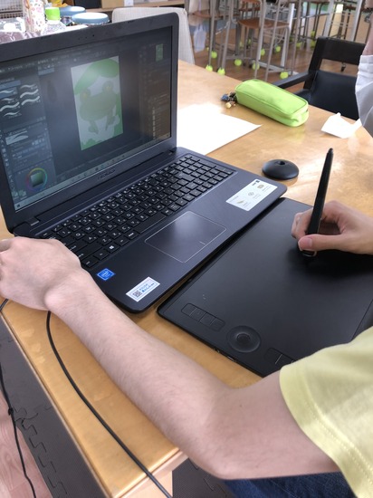 お知らせ KG取手通信制サポートキャンパスノートパソコンとペンタブでイラストを描いています。