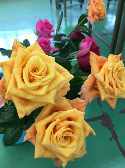 バラの花を分解して、花びらの付き方や、形や色の変化などを観察中。