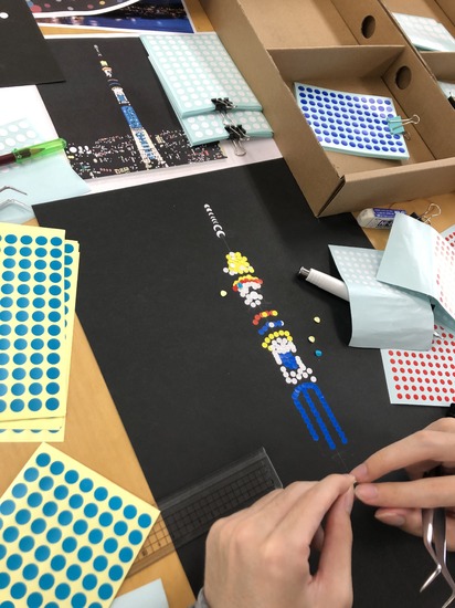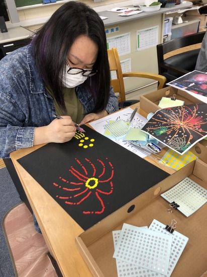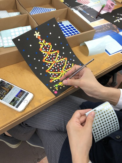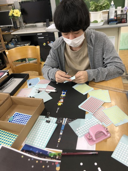 カラフルな色やサイズの丸シールと、黒の台紙に向かい、集中して取り組みます。