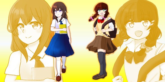 左…3年生の七瀬。得意な科目は化学。パフェが大好物で、最近はサイエンススイーツにはまっている。