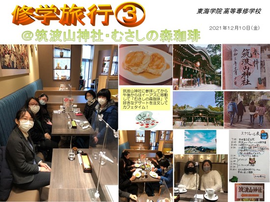 <R3>修学旅行の思い出 2021-12-16 お知らせ KG取手通信制サポートキャンパス 1週間後のクリスマスイベントも楽しみです!! ************************ 東海学院高等専修学校 (KG取手通信制サポートキャンパス) 〒302-0021 茨城県取手市寺田5237-9 関東鉄道常総線 寺原駅から徒歩1分 学校見学随時受付中!お気軽にお電話ください。 0297-85-3470 (平日9:00~17:00) ************************ 一覧へ