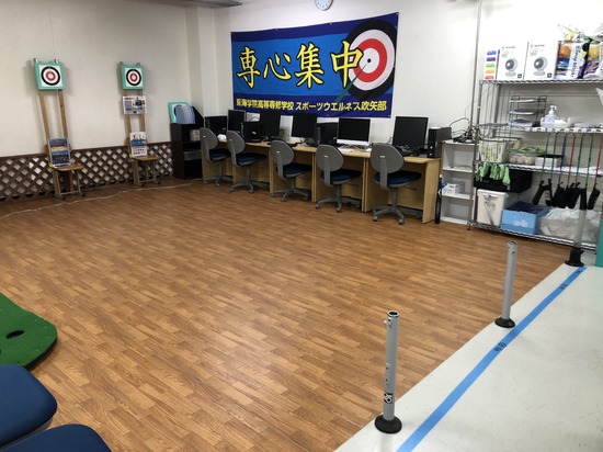 本校唯一の部活動『スポーツ吹矢部』は,2年連続で全国高等専修学校体育大会に出場しています。井野台校舎でもこの吹矢場で練習を重ね,団体戦での全国制覇を目指していきます。