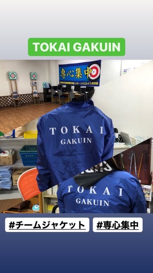 お知らせ KG取手通信制サポートキャンパス「TOKAI GAKUIN」のチームジャケットができました。この青いジャケットを着て,来月の『まいんバザール』(龍ヶ崎市商店街でのイベント)にスポーツ吹矢の体験ブースを出展します。