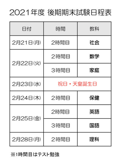 今日から後期期末試験(学年末テスト)週間になります。