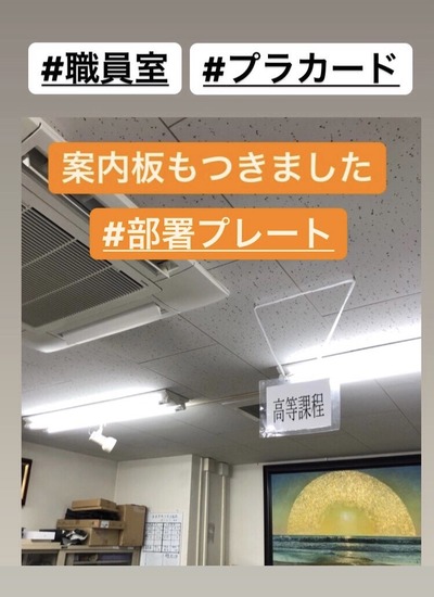 職員室には上の写真のような「案内プレート」が専門課程ごとにかかっています。各科において,新年度に向けた準備が進んでいきます。
