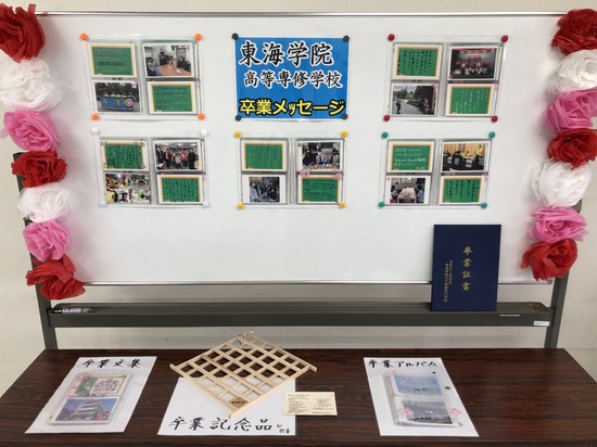 今年度の卒業生は1人でしたが,3年間しっかりと登校しながら自分の進路を考え,専門学校への進学を決めました。そして,高校生活でお世話になった人への「感謝メッセージ」や「卒業文集」を書き残して次のステップに大きく羽ばたいていきました。