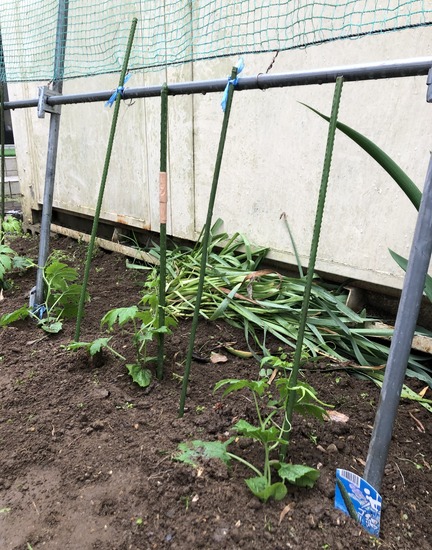 ただ,学校花壇には十分なスペースが確保できないので,他の場所にゴーヤ苗を植えて育てることにしています。