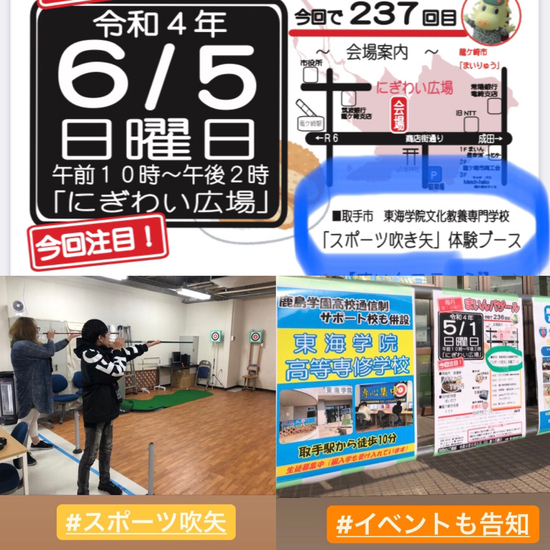お知らせ KG取手通信制サポートキャンパス来月6月5日(日)龍ケ崎市で開催される「まいんバザール」に『スポーツ吹矢体験ブース』を出展します。