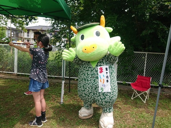 龍ケ崎市の公式ゆるキャラ『まいりゅう』もブース応援に来てくれました。