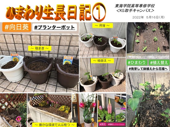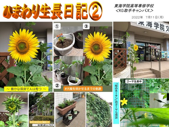 キャンパスの外では,夏の太陽を浴びて,ひまわりが大輪の花を咲かせています。
